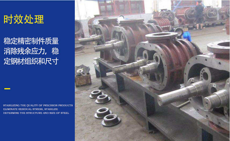 4.葉輪:是羅茨鼓風機的旋轉部分,分兩葉和三葉,現在由于三葉的比兩葉的出氣脈動小、 噪聲小,運轉平穩等很多優點,已逐漸代替兩葉羅茨風機。