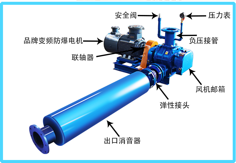 1.直連式羅茨風機由機殼、墻板、葉輪、進出口消聲器等4大部分組成。